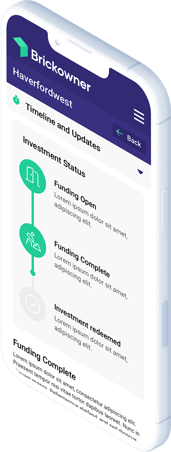 Throughout your investment term, you have the option to use the secondary market to offer your investment for sale to the Brickowner investor community. You also have the opportunity to top up your investments through the secondary market.