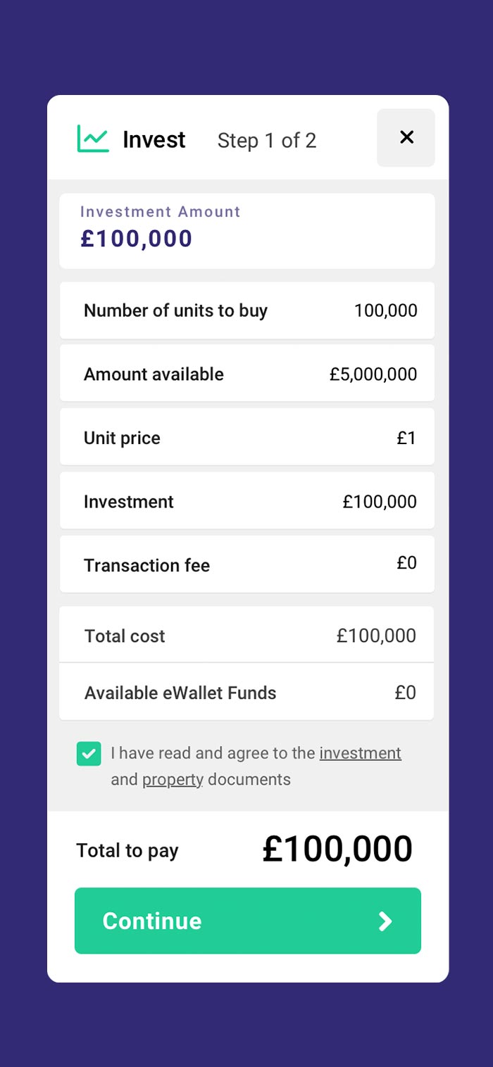 To begin investing, you first of all need to add funds to your online wallet, which is provided through our payment provider, MangoPay. Once you have done this, you can allocate funds to your chosen investment.